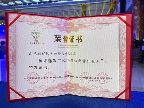 福瑞达生物股份荣膺“2021山东社会责任企业”