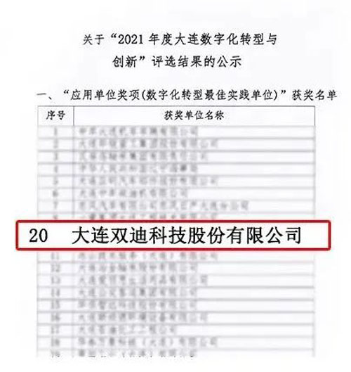 近日,大连市企业联合会、大连市CIO协会公示“2021年度大连数字化转型与创新”获奖企业名单,双迪公司成功入围!