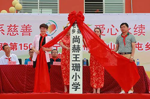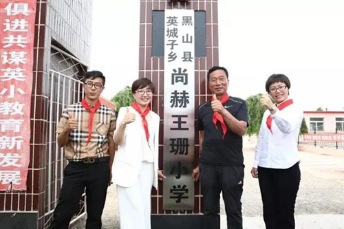 2018年6月,王珊回到自己的家乡-辽宁省锦州市黑山县,援建了第一所以自己名字命名的公益学校,完成了爱心助学、回馈家乡的心愿。