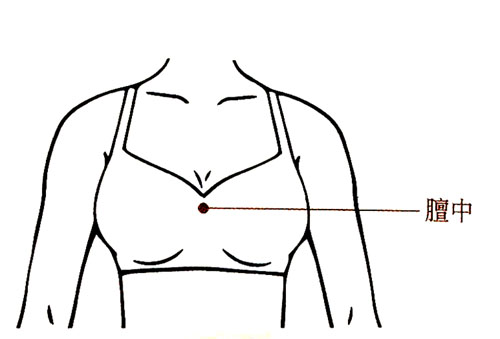 操作方法:取正坐或仰卧的姿势,掌根紧贴膻中穴,顺时针按揉3-5分钟,力量不宜过大,以局部发热为佳。