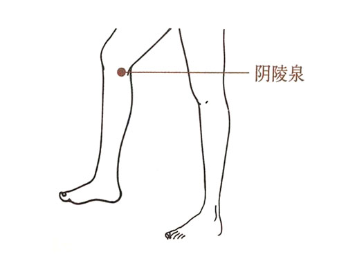 操作方法:将左脚架于右腿上,用右手的拇指或中指指端用力按压左侧阴陵泉,一压一放为1次,按压50次。然后换左手,用同样方法按压右侧穴位。每日2-3次。