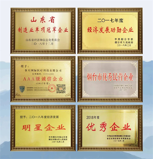 自1996年扎根烟台以来,20多年间,金天国际积极响应烟台市委市政府的号召,立足雪莲养护贴的“科研、生产、物流”等领域,脚踏实地、稳步发展,不断提升科研创新与智能化生产能力,构建了“产品研发专精化、精益生产数字化、物流仓配一体化”的管理服务体系。先后荣获省级“制造业单项冠军企业、‘专精特新’企业、质量管理优秀企业、AAA级用户满意标杆级企业、质量管理优秀企业、优秀民营企业”及市级“经济发展明星企业、优秀企业、功勋企业,中小企业创新转型优胜企业、最具社会责任企业”等荣誉称号,并基于科研实力及突出的社会贡献度荣膺“烟台市企业技术中心、非公有制经济纳税贡献50强”,上榜“烟台市百强经济发展贡献榜”。