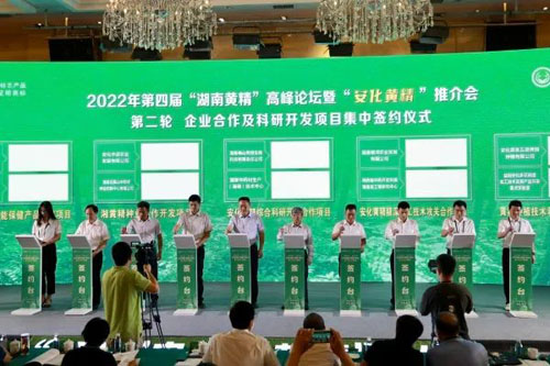 大会现场举行了重点项目签约仪式。共有10个安化黄精产业和生物医药项目进行了集中签约,签约金额21.9亿元。论坛期间,安化县政府还成功签约了绿色建材、新材料、竹木加工等产业类招商项目9个,签约项目累计达19个,签约总金额30.856亿。