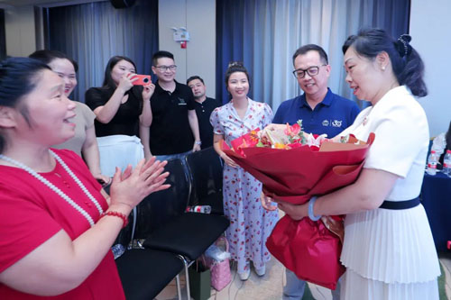 市场领导人陈赞芳女士献花感谢公司