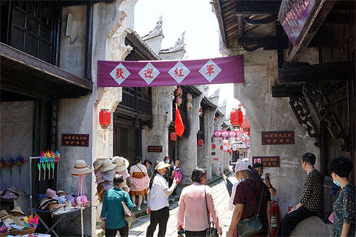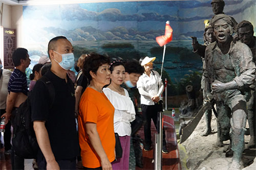 大家跟随讲解员参观了革命根据地瞿家湾。极具历史感的街道建筑、形象的雕塑,生动展现了那个“革命热情似火、战斗意志如钢”的年代。在参观过程中,大家自发合唱《洪湖赤卫队》,用激昂的歌声表达了对革命岁月的缅怀和对革命先烈的崇敬。