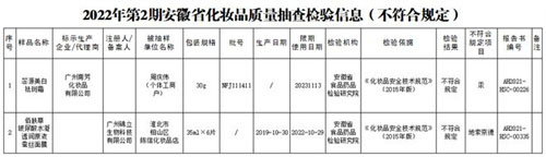 安徽省药监局通报两批次化妆品不符合规定