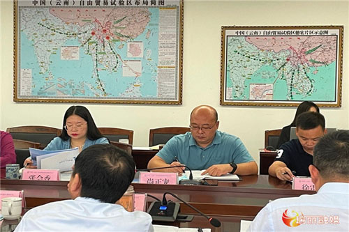 中国(云南)自由贸易试验区德宏片区工委副书记、管委副主任、市委副书记、姐告工委书记尚正宠主持召开与中交集团的交流座谈会。