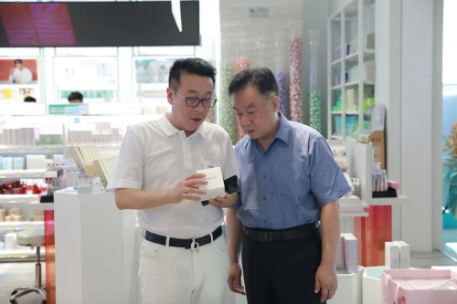 绿叶总部研发中心内,徐建成董事长向协会考察团介绍,目前绿叶拥有三大生产基地和五大研发中心,绿叶十分重视科技研发、力促自主研发创新,每年将营业额的3%投入研发;绿叶还打造有业内不多见的消费者研究中心,拥有感官评估实验室、沙龙体验中心、恒温恒湿实验室等一系列专业实验室,可以覆盖肌肤屏障、美白功效、抗衰老评估、毛发评估等功效测试。此外,调研团还考察了绿叶超市全国000001号旗舰店、产品体验中心和公益展厅等处,绿叶狠抓线下的市场战略、优质独特的自主商品以及大爱的企业奉献精神,给相建强理事长留下了深刻的印象。