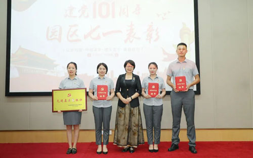 会上,绿之韵集团市场营销中心总经理戴三省、绿之韵集团常务副总经理梅其慧、绿之韵国际商学院常务副院长陈敏就上半年市场版块的管理及服务情况作总结汇报,并就下半年的市场工作进行了周密的安排和部署。为表彰先进青年团员,会议现场还对获得“建团100周年·我与企业共成长”征文比赛的优秀选手给予了表彰。会议宣读了今年七一获得浏阳经开区党工委优秀表彰的先进集体和党员名单:中共湖南绿之韵保健日用品责任有限公司支部委员会荣获浏阳经开区“先进基层党组织”,党员陈建新荣获浏阳经开区“优秀党务工作者”,徐继雷、湛芳琼荣获浏阳经开区“优秀共产党员”称号。绿之韵集团党委书记刘云向获奖选手颁奖。