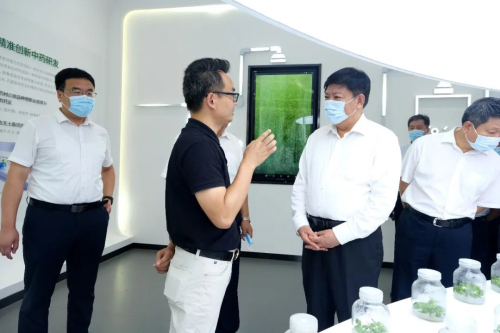河北中药材产业技术研究院林潘海院长向省领导介绍了植物细胞工厂,这项由金木科研团队历经10年精心研究的精准药用植物培植技术,并荣获国家专利。它利用特定的组织或器官来大量表达生产目标代谢产物(活性成份)。由此可获得一类不受农药、重金属、抗生素等污染,批次质量稳定,有效成份含量高,功能显著的药用植物原料。该项技术将应用于铁皮石斛胚芽、人参不定根、大麻花叶(CBD)、 脱碱白背三七、藏红花等珍稀药材资源的精准开发。此技术研发的铁皮石斛胚芽,其低聚糖含量高达28%,一颗胚芽的营养含量相当于一棵三年生石斛。