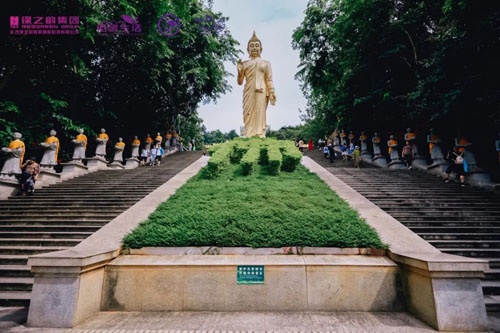西双版纳勐泐大佛寺,其前身为傣王朝皇家寺院“景飘大佛寺”,以弘扬“南传佛教文化”为中心。半山腰处东南亚地区最高的一尊释迦摩尼大佛,身高49米,台阶顶端巨龙聚首。层层递升的台阶,无数个僧人捧着僧钵,整齐分列两边,寺庙金碧辉煌又显示庄严、肃穆、虔诚。家人们在勐泐大佛寺里,充分感受着南传佛教的文化魅力,历经一场心灵的洗礼。
