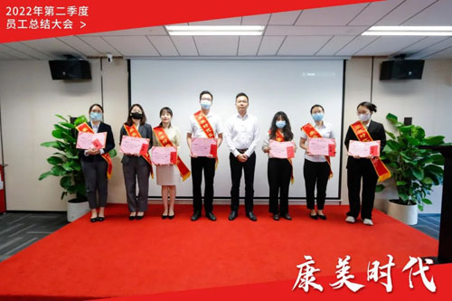 2022年上半年,康美时代全员奋进,为心中的目标无畏拼搏,其中涌现出一批表现突出的优秀员工,他们将“成人达己,成己达人”的经营理念牢记心中,用亮眼的成绩展现优秀员工的风采。本次会议表彰了11位康美时代“2022年第二季度优秀员工”,并为优秀员工颁奖,勉励大家再接再厉,凝心聚力奋发有为,为公司的持续稳健发展做出更大、更好的贡献!