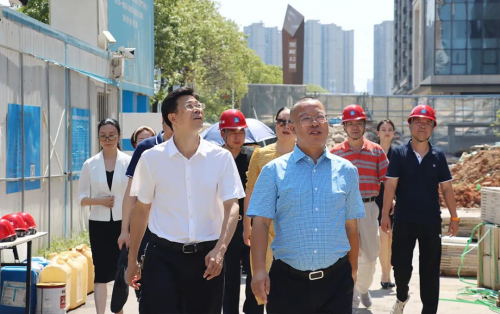 2022年7月26日,长沙市政协副主席、致公党湖南省委会副主委、长沙市委会主委、长沙公共资源交易中心主任黄锋,长沙市雨花区人民政府副区长、致公党长沙市委会副主委易静,致公党长沙市委会常委、秘书长欧阳明,致公党长沙市委会原秘书长、“致多星”企业家服务平台总召集人彭晓辉,致公党长沙市委会四级主任科员汤卓一行莅临绿之韵中心走访调研。湖南省政协委员、中国致公党党员、致公党湖南省委会“数字互联”委员会名誉主任、湖南省慈善总会副会长、绿之韵集团董事长胡国安,湖南致公麓商会副会长胡武安,湖南鼎晨泰投资有限公司总经理林小娟,湖南绿之韵房地产开发有限公司总经理周君四,副总经理严明辉、劳毅,中建五局三公司绿之韵中心项目经理余送来、生产经理张子维,湖南拓天监理有限公司绿之韵中心项目总监刘泽红等全程陪同。