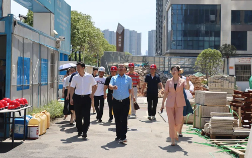 调研组一行在项目工作人员的引导下,查看了整个项目的施工进度及作业环境,了解绿之韵中心项目建设安全生产、绿色施工、卫生防疫、食品安全等情况。