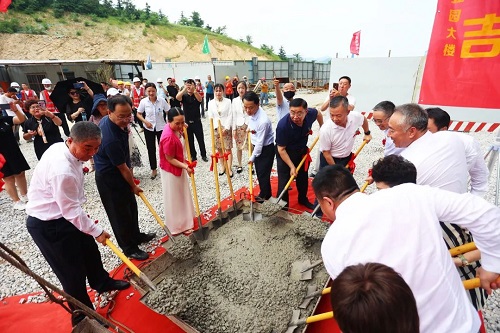 在全体领导及来宾的见证下,进行封顶仪式非常隆重的环节——共同浇筑混凝土,所有领导人移步到料斗前,拿起象征着八方来财的铲子,随着倒计时开始,金铲齐开,扬起泥土,共同完成封顶仪式。