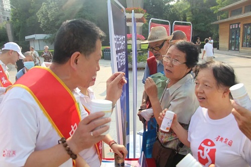 在宣传台前,围满了前来咨询、了解的中老年朋友。工作人员以公司产品为例,现场进行宣讲,从“保健食品”标志识别、正规厂家和产品信息获取、适宜人群和保健功能标识、“保健食品不能代替药品”警示语提醒等多个方面,给大家讲解了正规保健品在外包装上的特点,教会大家如何根据自己的需求来选取正规保健品,同时通过有奖问答、互动抢答等形式,让大家加深对正规保健品知识的印象。我司展台也精心为大家准备了完美牌低聚果糖沙棘茶(固体饮料)和完美牌芦荟王浆矿物粉的试饮,让大家在炎炎夏日能够体会到一丝甘甜和凉爽,大家对产品的口感赞不绝口。
