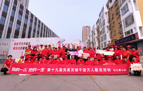 8月4日,正值七夕,第十九届“完美百城千店万人献血活动”河北唐山站在河北省唐山市迁安文化广场圆满举办,现场106名完美伙伴以及消费者参与了活动。