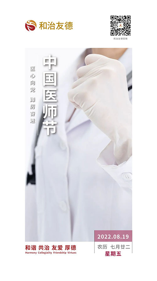 7月20日,国家卫生健康委办公厅、国家中医药局办公室、中央军委后勤保障部卫生局印发《关于做好庆祝2022年中国医师节有关工作的通知》,确定今年8月19日第五个中国医师节的节日主题是——“‘医’心向党、踔厉奋进”。