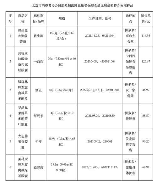 近年来,声称具有减肥、辅助降血压、改善睡眠、抗疲劳、增强免疫力等功能的保健品非法添加药物问题深受消费者关注。为考察网络上关注度较高的保健食品等是否存在非法添加的情况,为消费者的购买提供参考,记者了解到,近日,北京市消协组织进行了减肥及辅助降血压保健食品比较试验,共涉及26批次样品,碧生源、卡西西、修正、喜倍力、燃脂王、江中、多燕瘦等品牌在列。