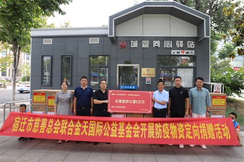 为进一步助力疫情防控常态化工作,全方位筑牢防疫屏障,保障健康一线城市管理和工作人员的健康防护,9月9日,金天国际公益基金会联合宿迁市慈善总会共同向宿迁市城市管理局捐赠5万只日常防护口罩。