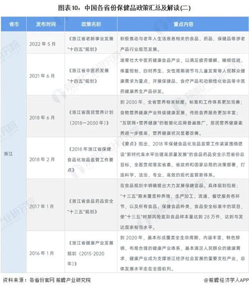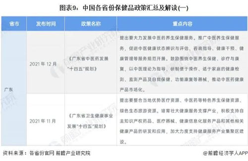 根据国家保健品相关政策和规划,中国保健品行业政策主要以食品安全、市场规范、中医药发展等方向为主。中国各省市在国家政策的基础上出台了省市相关的政策,汇总如下表所示: