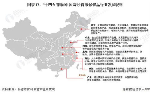 从地方层面政策去看,"十四五"期间,省市规划以发展中药保健品、海洋生物医药保健品和保健品行业规范化为主。