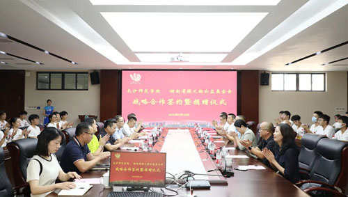 长沙师范学院与湖南省绿之韵公益基金会战略合作签约暨捐赠仪式现场