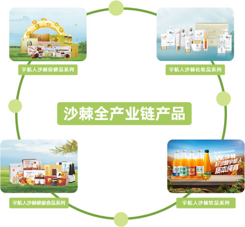 内蒙古宇航人公司自创立之初,就致力于沙棘产业综合开发利用。从生态保护种植到产品的深度加工逐步延长产业链,相继在医药、功能食品、个人护理品、保健食品、沙棘饮品、销售等领域开发并上市了近200多个优质产品,出口至20个国家和地区。