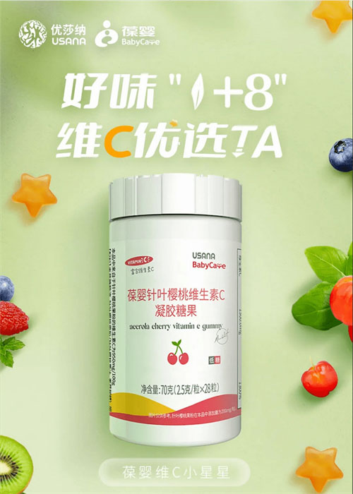 目前,USANA葆婴拥有四大产品系列——成人健康、母婴健康、营养食品、肌肤营养。此次获奖产品葆婴针叶樱桃维生素C凝胶糖果于2022年5月底上市,是USANA葆婴推出的既适用于儿童也适用于成人的一款创新产品。作为一款以补充维生素C为主的营养食品,每粒产品中添加进口针叶樱桃果粉200mg,可满足32.5mg维生素C的摄入需求。