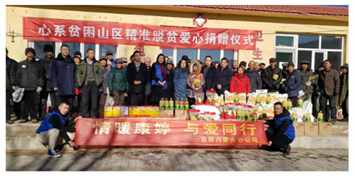 康婷集团自成立以来,积极倡导和履行社会责任,弘扬“温暖传递”的爱心公益理念,投身于社会公益事业,用实际行动回馈社会,传递正能量。在企业发展的同时不忘扶助社会弱势群体,为国家实现“坚定走精准扶贫之路,建设好全面小康社会”贡献企业的一份力量。