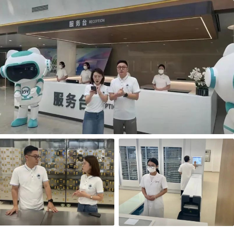 大厅两侧分别设置了挂号、收费、药房、导诊咨询、自助服务等窗口。中药房中的中药自助智慧发药仓和每日1000人次的自动煎药系统,极大地方便中医就诊患者。西药房配备有现代化自动摆药机,采用智能药品核对系统,将药品实物同患者处方进行智能核对,实现智能识别,确保处方药品发放100%正确。
