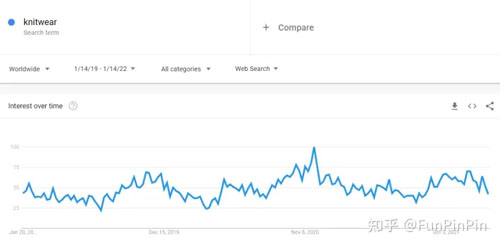 根据谷歌趋势,关键词 "针织品 "在2020年底达到高峰,并在进入2022年后保持高关注度。