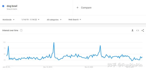 从谷歌趋势上看,每年年初对狗碗的搜索都会急剧上升。因此,我们可以预计在2022年的最初几个月,搜索量也会急剧飙升。