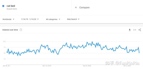 根据谷歌趋势,这些年来猫床的搜索量一直在稳步增长,只有一些小的下降。