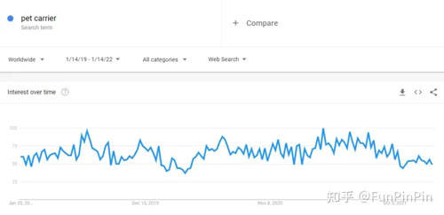 这些趋势性产品的需求是稳定的。2020年,宠物背带的谷歌趋势量经历了一次大幅下滑,但此后又有所回升。