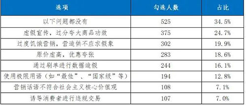 “主播在宣传营销商品时,是否存在以下情况”数据统计▼