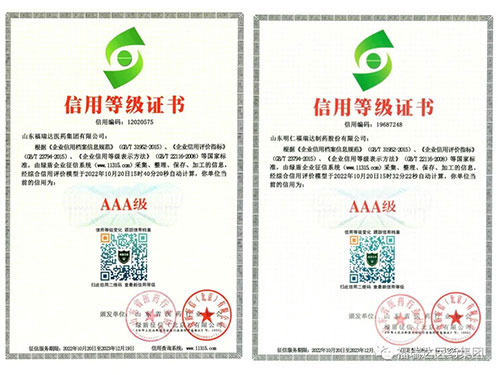 近日,福瑞达医药集团与明仁福瑞达顺利通过山东省医药行业协会和第三方权威征信机构的评估审核,获得AAA级企业信用等级证书。