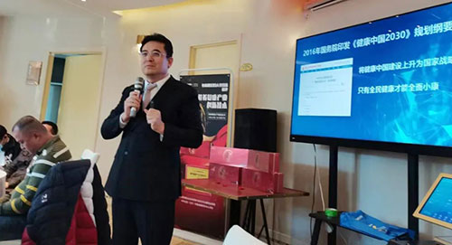 纳宜热疗项目全国招商负责人郭金良先生通过讲解当下经济形势分析、健康中国战略、公司战略规划三个核心话题,向到场嘉宾生动诠释了健康行业未来的发展趋势、公司的实力和愛·感恩文化。