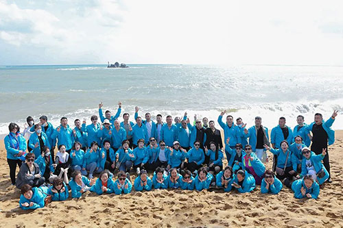 家人们游览“玉带滩”,这是载入世界吉尼斯纪录的分隔河、海最狭长的沙滩半岛。湖光山色,内外相映,构成了一幅奇异的景观。