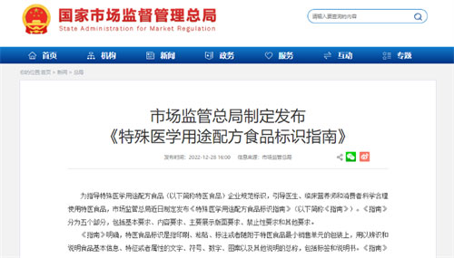 为指导特殊医学用途配方食品企业规范标识,引导医生、临床营养师和消费者科学合理使用特医食品,市场监管总局近日制定发布《特殊医学用途配方食品标识指南》。