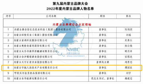 品牌价值23.11亿 宇航人再登内蒙古百强品牌