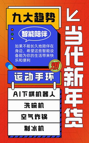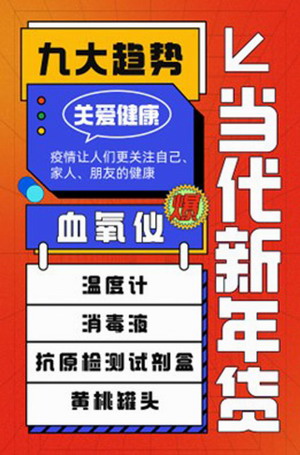 日前,天猫发布了当代新年货的九大趋势,包括关爱健康、智能陪伴、萌宠治愈、沉浸式宅家、云端生活、近郊社交、复古风潮和文化自信等,这也是消费者对新年新生活的新定义和向往追求。