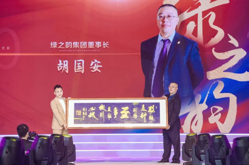 绿之韵集团董事长胡国安向所有幸福代言人赠寄语牌匾