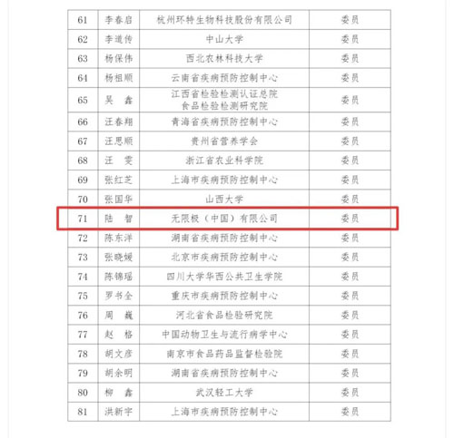 此次陆智先生获聘中华预防医学会食品卫生分会委员,充分体现了权威机构对无限极在产品科研、质量安全控制和人才培养等方面的认可。一直以来,无限极坚守“100-1=0”的质量理念,重视食品安全,对产品安全零容忍。未来,我们将积极开展更多相关研究,持续提高产品质量安全的研究及控制水平,为消费者提供更安全、更高品质的产品。