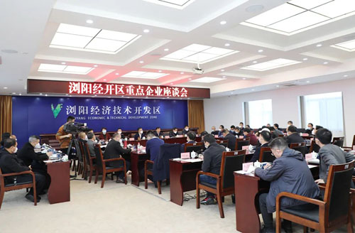为积极谋划2023年工作,倾听企业发展心声,2023年1月13日下午,浏阳经开区召开重点企业座谈会。浏阳经开区党工委书记郑以仁主持会议并讲话。浏阳经开区党工委副书记、管委会主任喻辉对园区2022年工作情况进行了通报。全体委领导参加会议。绿之韵集团董事长胡国安与37家重点企业负责人受邀参加座谈会。
