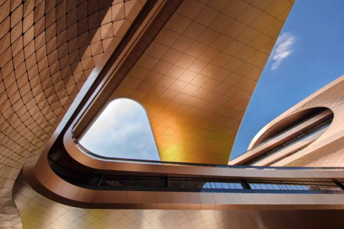 在构想阶段,李锦记健康产品集团主席、无限极(中国)有限公司董事长李惠森先生大胆提出要打造“一座不像办公楼的办公楼”的想法。有“曲线女王”之誉的扎哈·哈迪德将其具象为俯瞰形似“无限环”的设计——以流线型外立面表现建筑的灵动性,用两条超长连廊连接起两座八层高的大楼——以一个无限符号的创新设计完美契合公司“永远创业”的企业精神,呈现出一座独具特色的个性化高科技未来建筑。