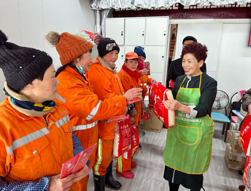 1月14日,济南雪花飞舞,到处银装素裹,迎来了2023年的第一场雪。济南市气象台也陆续发布寒潮黄色预警信号和道路结冰黄色预警信号。一大早,天桥区纬北路街道城市管理办公室副主任胡丽芳就按照事先制定的应急预案,带领环卫工人迅速开展清雪除冰作业。他们从凌晨4点一直忙碌到中午12点。胡丽芳告诉记者: “我们的环卫工人特别的辛苦,节假日或雨雪天也是他们最忙碌的时候。他们大都是家在外地,也难得有时间和家人团聚。所以,特别感谢康宝莱公司和郭大姐这样的志愿者们,每年小年都惦记着我们的环卫工人,让他们吃一碗热腾腾的饺子,过一个温暖、幸福的小年。”