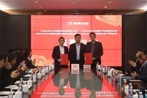 刘国伟代表公司经营班子与刘新泉、欧国雄、陈启鋆签署《2023年公司经营目标责任状》