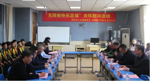 宋晓飞经理向大家介绍了公司的基本情况以及从事公益事业的历程,并表示希望通过“无限极快乐足球”项目帮助更多孩子,让他们自由快乐的学习、成长,为他们的足球梦想插上飞翔的翅膀。今后将继续关心和支持青少年足球事业发展,为打造浓厚足球氛围贡献力量。