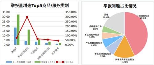 市场监管部门坚持民生导向,强化对投诉举报问题的分析研判,依法严厉查处违法违规行为。针对广告违法、虚假宣传等举报立案28.11万件;针对侵害消费者权益行为举报立案6.3万件,主要涉及销售不符合安全要求产品、假冒伪劣、欺诈消费者等;针对食品安全违法举报立案4.87万件。